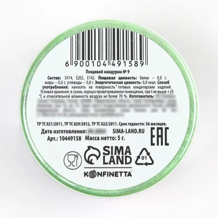 Кандурин крупный «Светло-зелёный» для десертов и напитков, водорастворимый, 5 г. — Характеристики