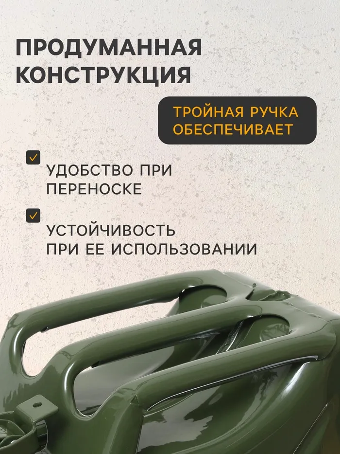 • Удобство: компактные размеры позволяют легко разместить канистру в багажнике автомобиля, гараже или на рабочем месте.