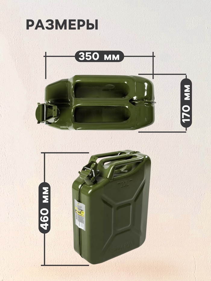 Канистра стальная для ГСМ ZARYA, 20 л, металлическая, крышка с рычагом — Характеристики