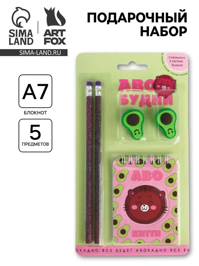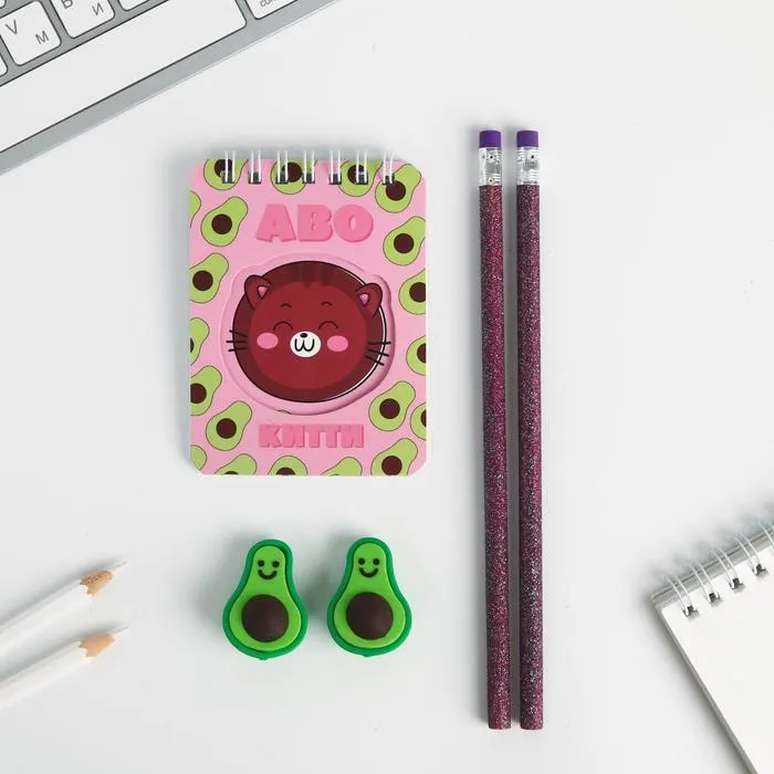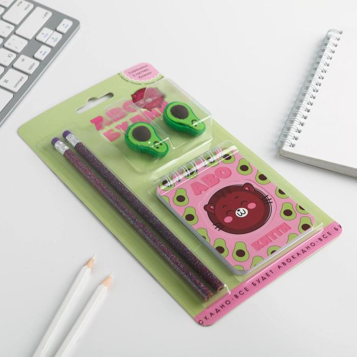 Канцелярский набор «Аво-будни», ластики 2 шт, блокнот, карандаши — Характеристики