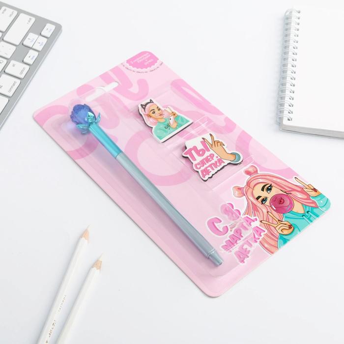 Канцелярский набор «С 8 Марта детка»: магнитные закладки 2 шт и ручка — Характеристики