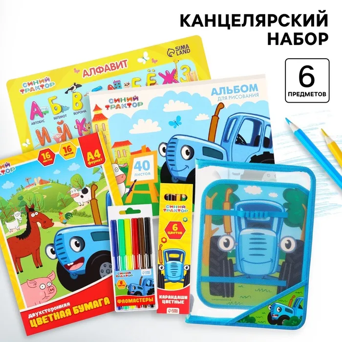 Канцелярский набор в папке, 6 предметов, «Синий трактор» — Характеристики