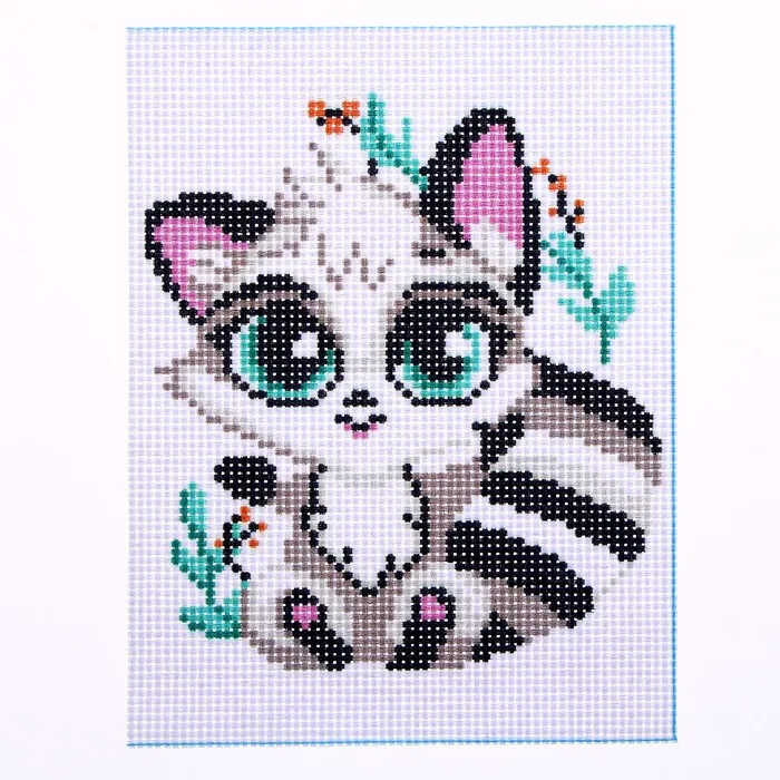 Небольшая вышивка с простым узором и цветной схемой — то, что нужно малышу, чтобы освоить новое хобби.