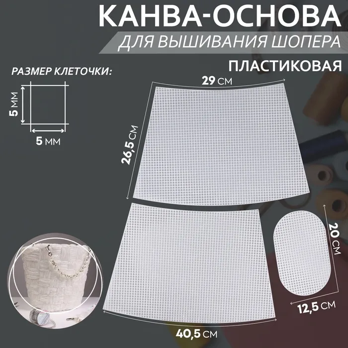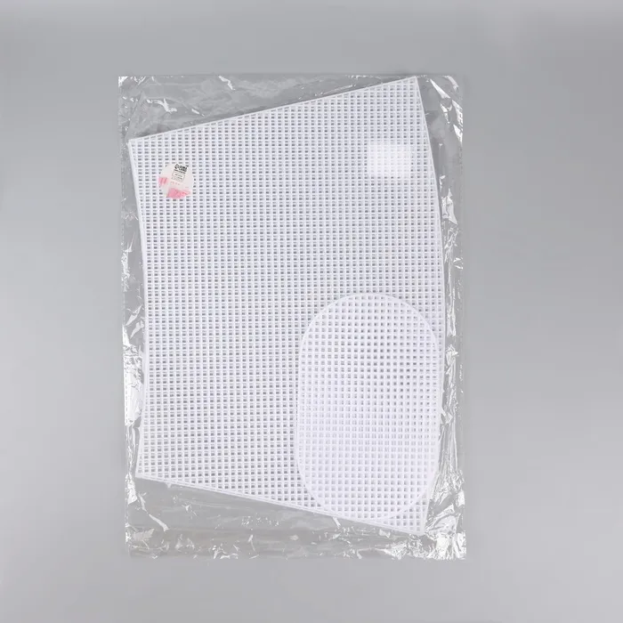 Пластиковая канва — это основа для ручной вышивки, которая имеет регулярную сетку отверстий. Изделие долговечно, обладает высокой прочностью и устойчиво к деформации. Канва упрощает процесс создания сумки-корзины (шопера).