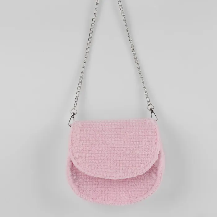 Подберите материал, из которого вы хотите изготовить сумочку, – это может быть пряжа, ленты или шнуры. Установите необходимую фурнитуру, цепочку или ручку, и ваше изделия собственного дизайна готово.