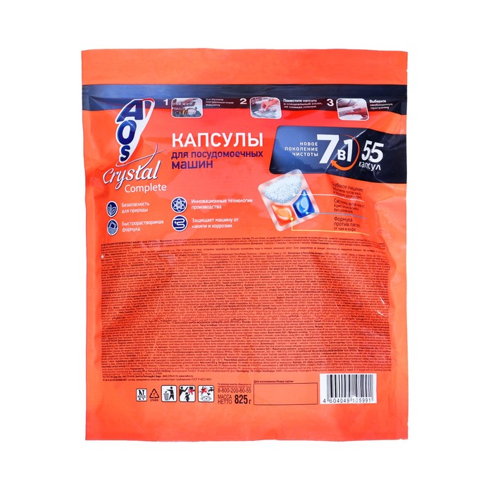 Капсулы для посудомоечных машин AOS «Crystal Complete» обеспечивают идеальную чистоту вашей посуды. Благодаря специальной формуле они эффективно удаляют даже самые стойкие загрязнения, такие как пригоревший жир и остатки пищи.