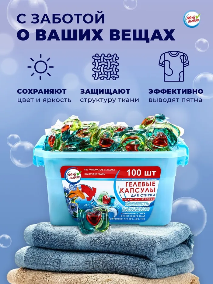 Капсулы для стирки 3в1, "Свежесть васильков", 100*13 г