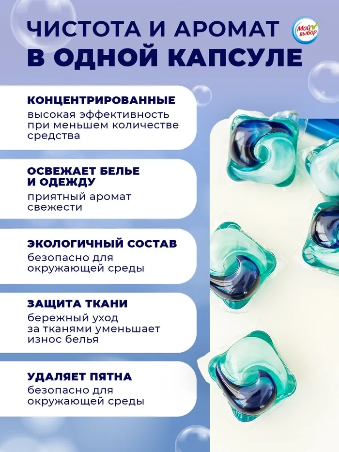 Капсулы для стирки 3в1, "Свежесть васильков", 100*13 г — Характеристики