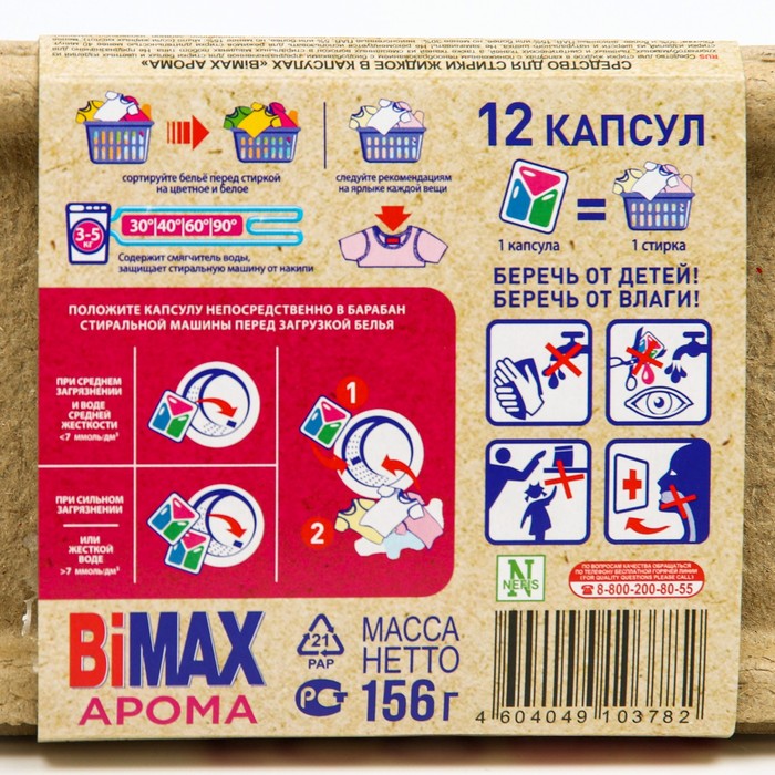 Капсулы для стирки BiMax Aroma- новая активная концентрированная формула эффективно справляется с пятнами, защищает волокна ткани и дарит приятный, нежный аромат. Безупречная чистота и мягкий аромат цветочной свежести.