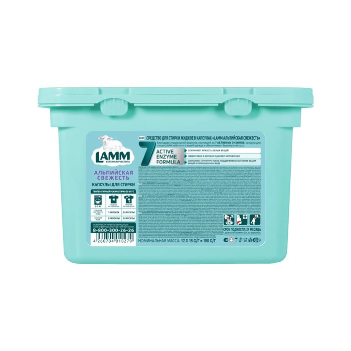 Капсулы для стирки с пониженным пенообразованием и биодобавками эффективно и бережно отстирывают белые и светлые изделия из хлопчатобумажных, льняных и синтетических тканей, а также тканей из смешанных волокон в стиральных машинах любого типа.