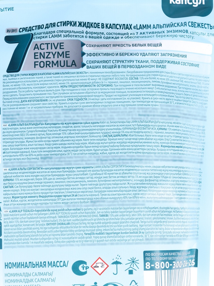 Капсулы для стирки LAMM Альпийская свежесть, 50 шт. — Характеристики