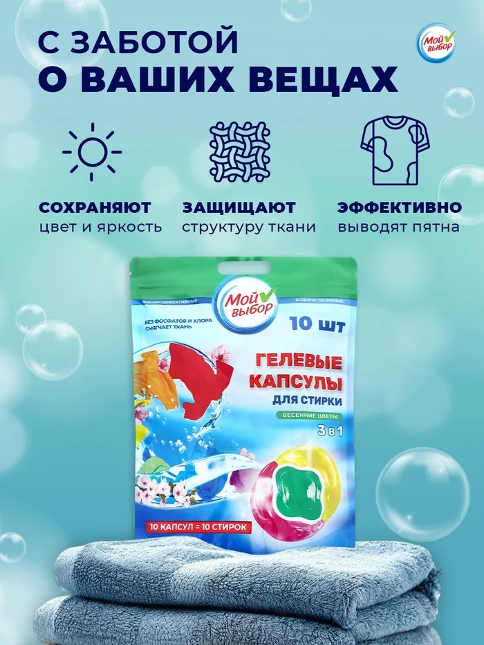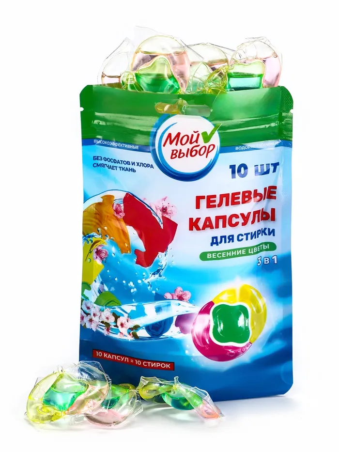 Капсулы для стирки Мой Выбор 3в1 "Весенние цветы" 10 шт. по 8 гр