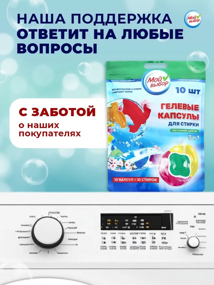 Капсулы для стирки Мой Выбор 3в1 "Весенние цветы" 10 шт. по 8 гр — Характеристики