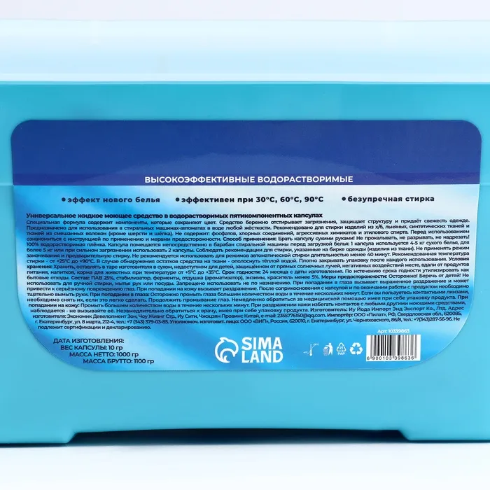 Средство обладает свежим ароматом океана, который дарит ощущение прохлады и чистоты. Капсулы подходят для всех типов тканей, включая хлопок, лён, синтетику и смешанные волокна. Они безопасны для окружающей среды и не вызывают аллергии.