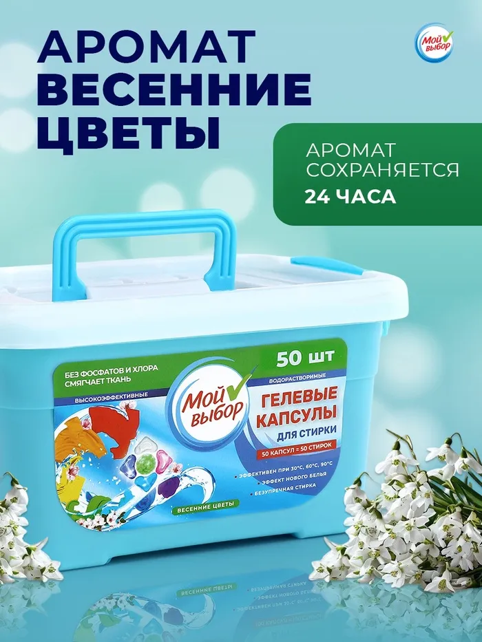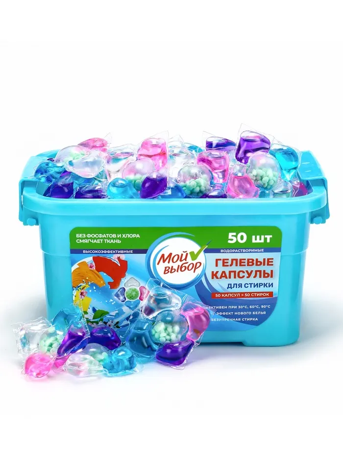 Капсулы для стирки «Мой Выбор» 5в1 «Весенние цветы» — это инновационное средство, созданное специально для тех, кто ценит качество и комфорт. В упаковке содержится 50 капсул по 10 грамм каждая, что обеспечивает достаточное количество стирок.
