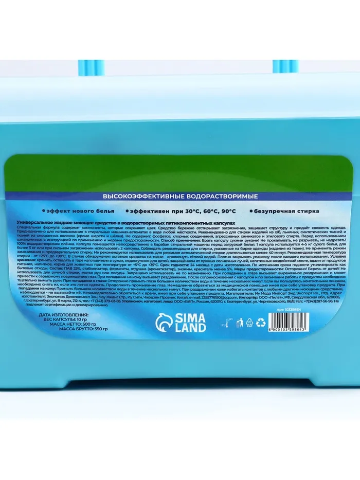 Не содержит фосфатов, хлорных соединений, агрессивных химикатов и этилового спирта, что делает капсулы безопасными для окружающей среды и вашего здоровья.