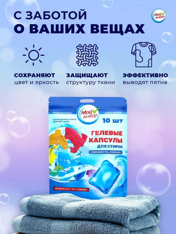 Пусть ваша одежда будет наполнена прохладой и свежестью с капсулами "Свежесть океана" от Мой Выбор!