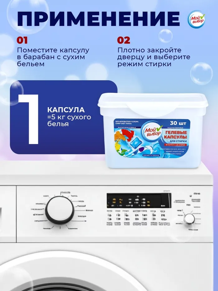 А благодаря своей экологичности и безопасности, капсулы "Свежесть океана" станут идеальным выбором для тех, кто ценит чистоту без компромиссов. Берегите природу и свое здоровье вместе с Мой Выбор!