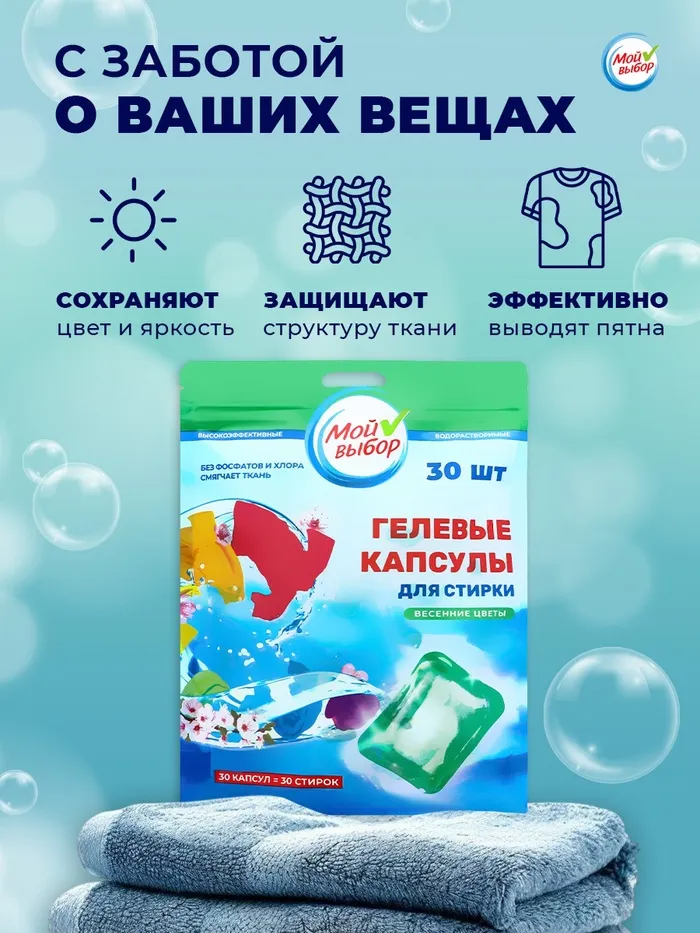 Капсулы для стирки Мой Выбор "Весенние цветы" 30 шт. по 8 гр дойпак — Характеристики
