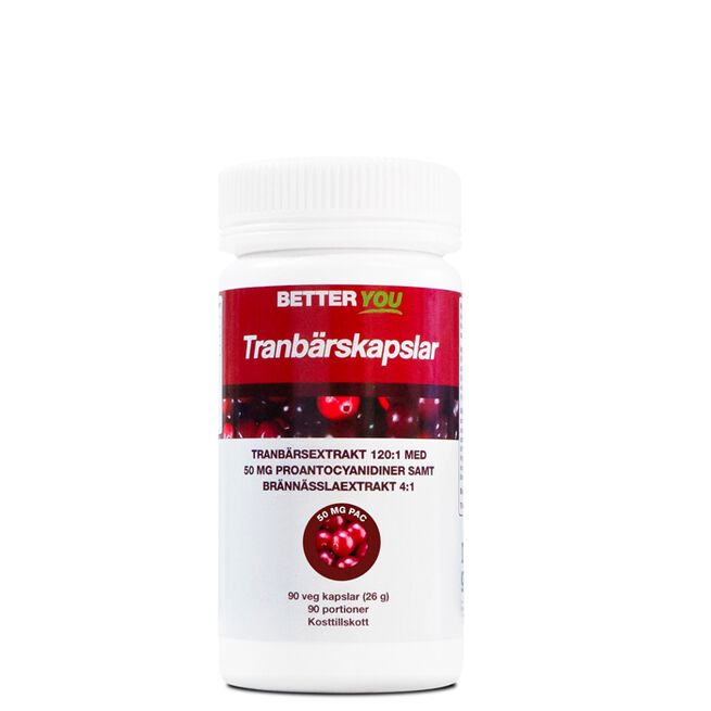 Капсулы клюквы — это пищевая добавка Better You, содержащая экстракт клюквы в соотношении 120:1, включая 50 мг проантоцианидина и экстракт крапивы.