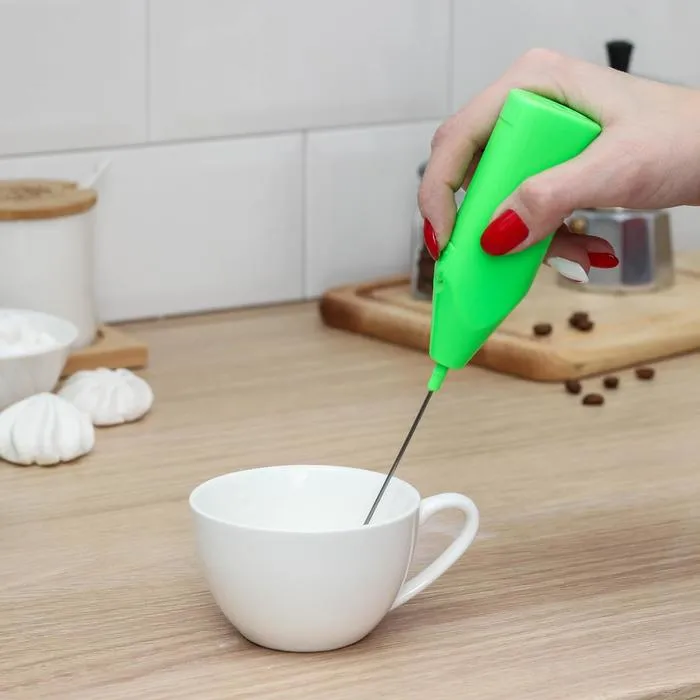 - Мобильность и свобода: работает от батареек (тип AA), поэтому вы можете взбивать пену где угодно.