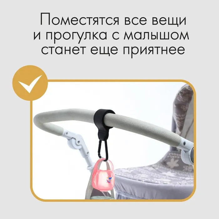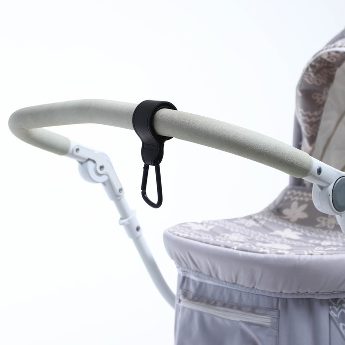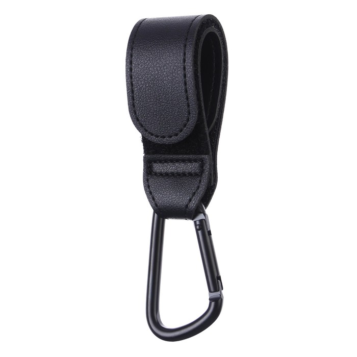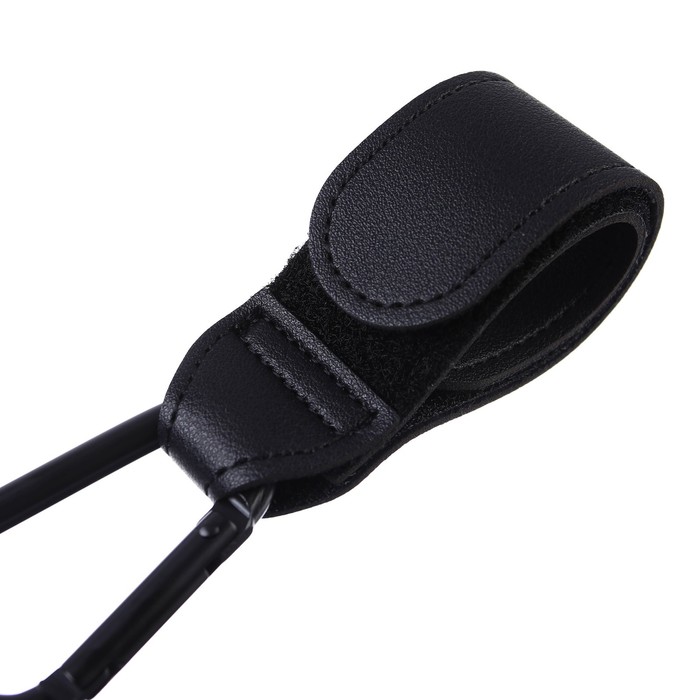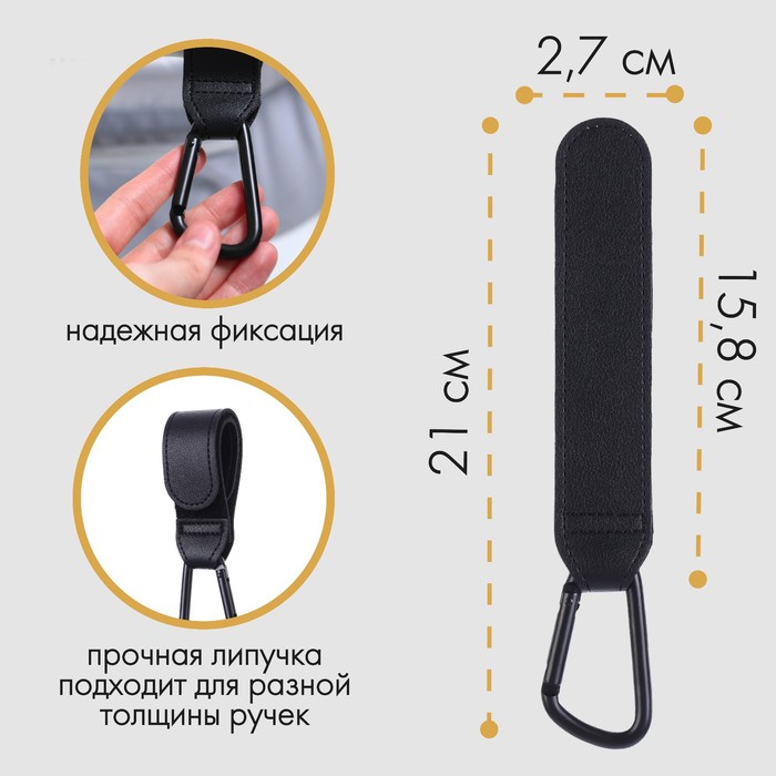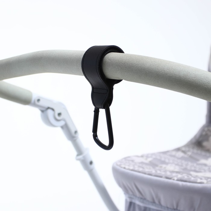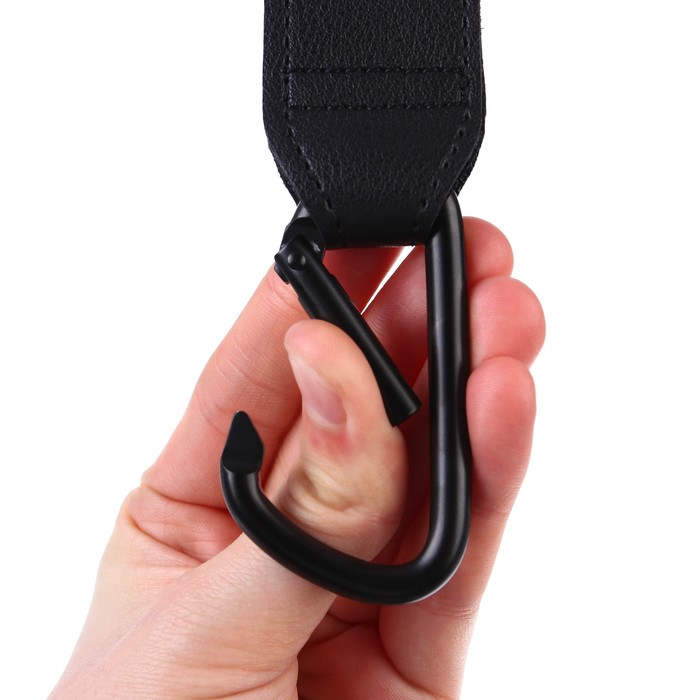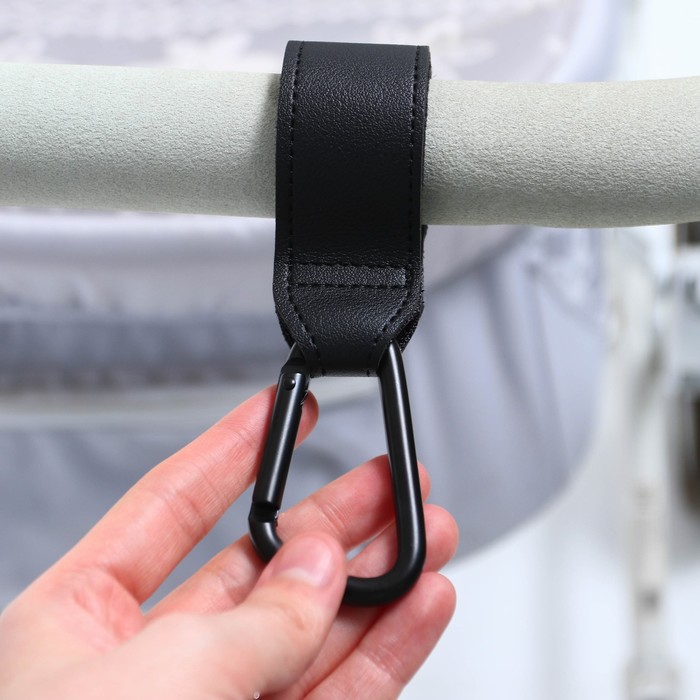 Карабин для сумок на коляску, на липучке, экокожа, черный — Характеристики