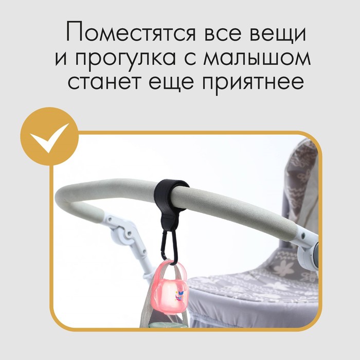 Универсальный карабин на липучке - это незаменимый аксессуар для мам. Карабин легко крепится к различным поверхностям, таким как коляски, сумки, тележки, к ручкам велосипедов мопедов квадроциклов. Карабин идеально подходит для использования во время прогулок с коляской, так как он позволяет закреплять сумки и корзины на ручку коляски, освобождая руки мамы. Карабин также может быть использован для закрепления детской сумки на рюкзаке или защелкивания держателя для ключей на детской одежде. Карабин подойдет для подвешивания сумок или пакетов в автомобиле, просто зацепите его липучкой за крепление подголовника.