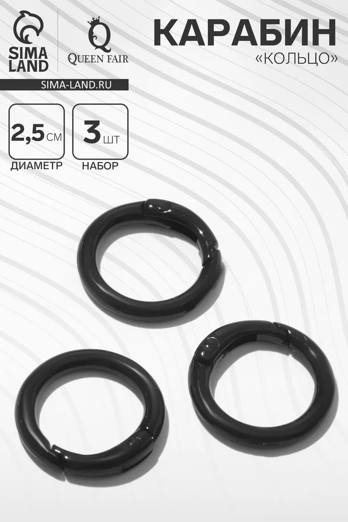 Карабин "Кольцо" d=2,5 см (набор 3 шт.) — это удобный и практичный аксессуар для создания различных украшений и рукодельных проектов. Каждое кольцо имеет диаметр 2,5 см и выполнено в стильном чёрном цвете, что придаёт изделиям современный и лаконичный вид. Карабины идеально подходят для использования в браслетах, ожерельях, сумках и других аксессуарах.