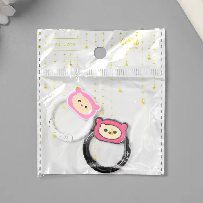 Карабин металл "Медвежонок в шапке" набор 2 шт 3,3х3 см