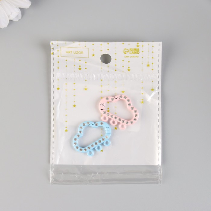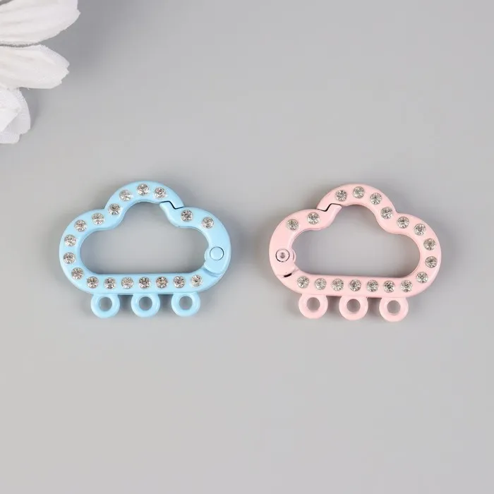 Карабин металл, пластик с кольцами "Облако со стразами" набор 2 шт 2,4х3 см