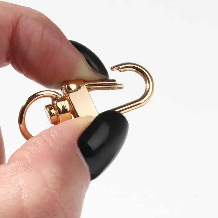 Металлический карабин предназначен для крепления ремней, ручек или декоративных элементов к сумке. Изготовлен из прочного металла, имеет гладкую поверхность и элегантный вид, что делает его не только функциональным, но и стильным элементом фурнитуры.