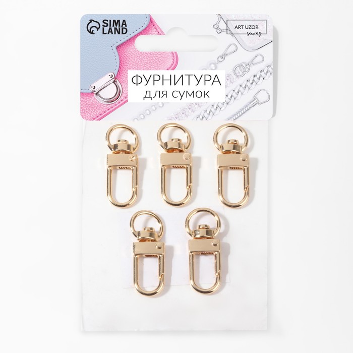 Карабин металлический, 34×12.5 мм / 10×1 мм, 5 шт., цвет золотой — Характеристики