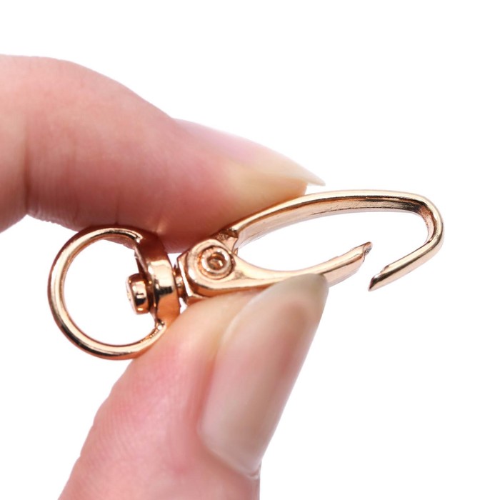 Металлический карабин предназначен для крепления ремней, ручек или декоративных элементов к сумке. Изготовлен из прочного металла, имеет гладкую поверхность и элегантный вид, что делает его не только функциональным, но и стильным элементом фурнитуры.