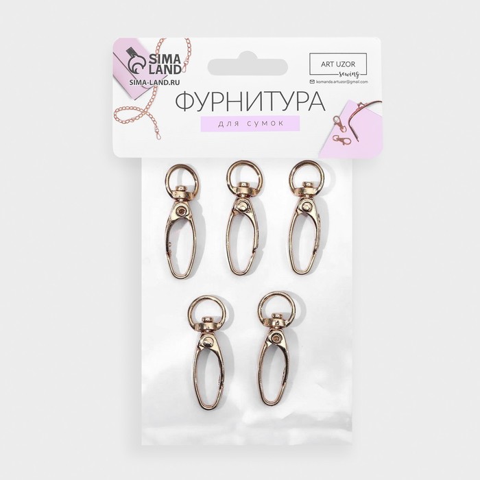 Карабин металлический, 36×12 мм / 9.5×1.4 мм, 5 шт., цвет золотой — Характеристики