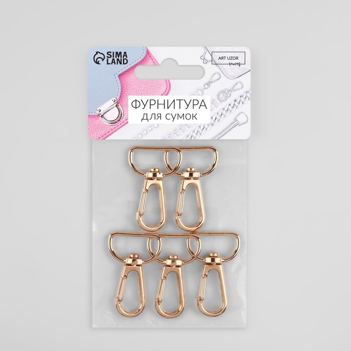 Карабин металлический, 36×24 мм / 20×2 мм, 5 шт., цвет золотой — Характеристики