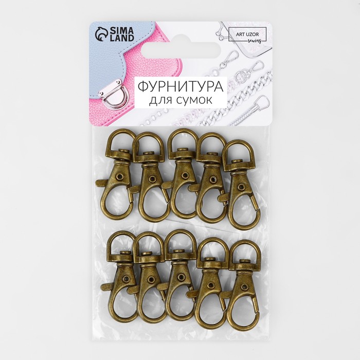 Карабин металлический, 37×12 мм / 9×1.7 мм, 10 шт., цвет бронзовый — Характеристики