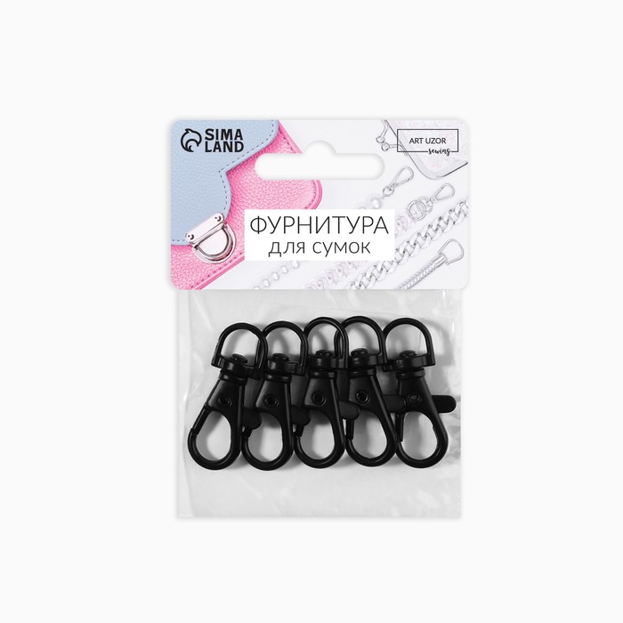 Карабин металлический, 37×12 мм / 9×1.7 мм, 5 шт., чёрный — Характеристики