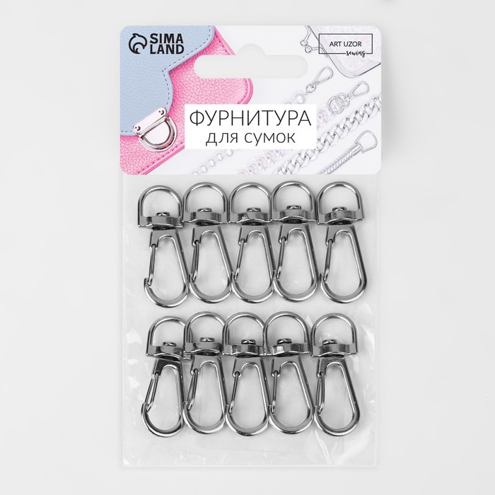 Карабин металлический, 37×13 мм / 10×2 мм, 10 шт., цвет серебряный — Характеристики
