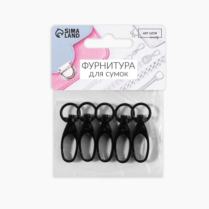 Карабин металлический, 38×12 мм / 10×1 мм, 5 шт., чёрный — Характеристики