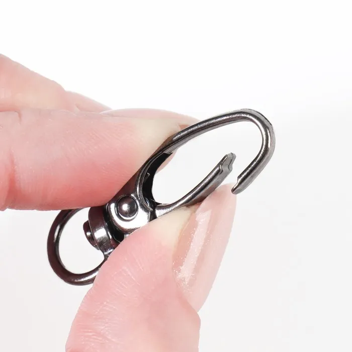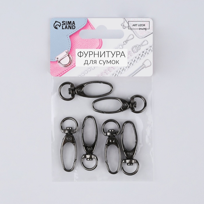 Металлический карабин предназначен для крепления ремней, ручек или декоративных элементов к сумке. Изготовлен из прочного металла, имеет гладкую поверхность и элегантный вид, что делает его не только функциональным, но и стильным элементом фурнитуры.