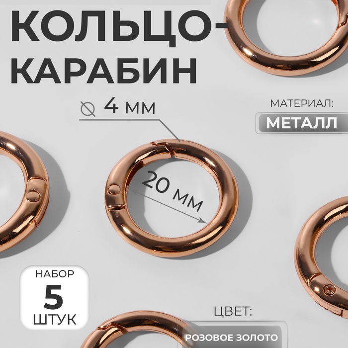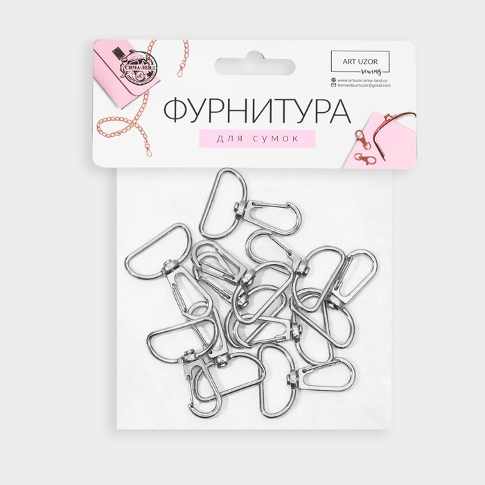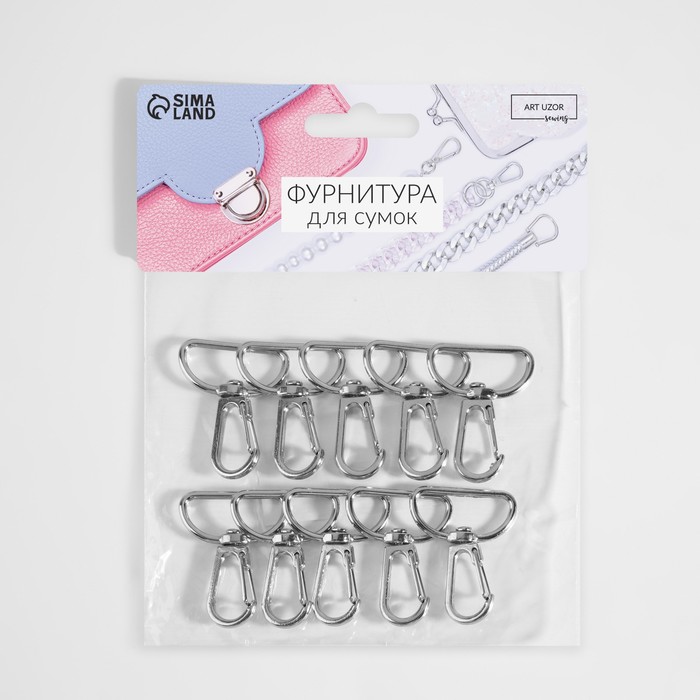 Карабин металлический, 39 × 31 мм / 25 × 2,2 мм, 10 шт, цвет серебряный — Характеристики