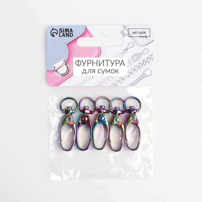 Карабин металлический, 40×14 мм / 10×1 мм, 5 шт., разноцветный — Характеристики