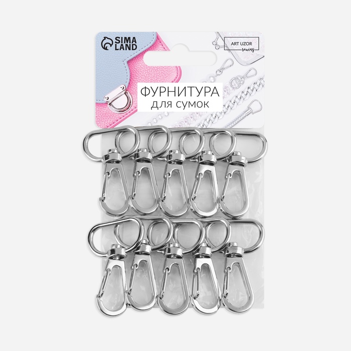 Карабин металлический, 40×25 мм / 21×2 мм, 10 шт., цвет серебряный — Характеристики