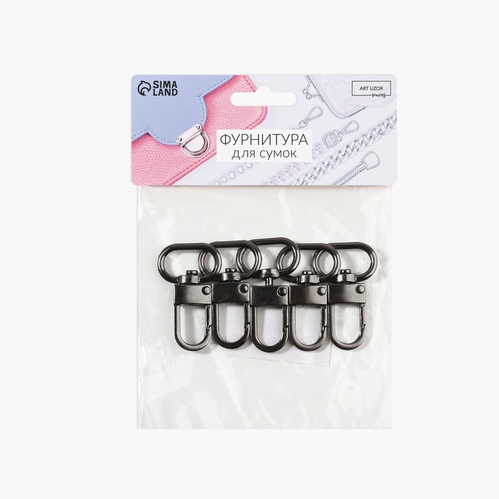 Карабин металлический, 41×25 мм / 20×2.5 мм, 5 шт., цвет чёрный никель — Характеристики