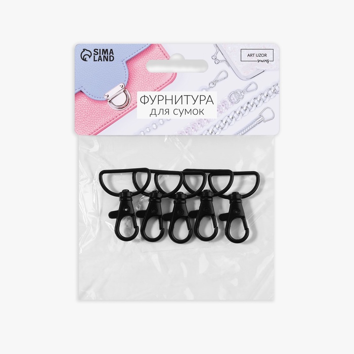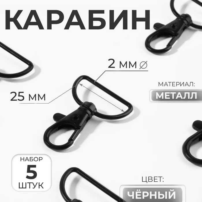 Карабин металлический, 41×30 мм / 25×2 мм, 5 шт., чёрный — Характеристики