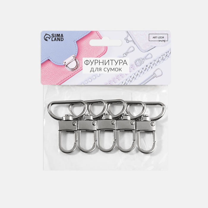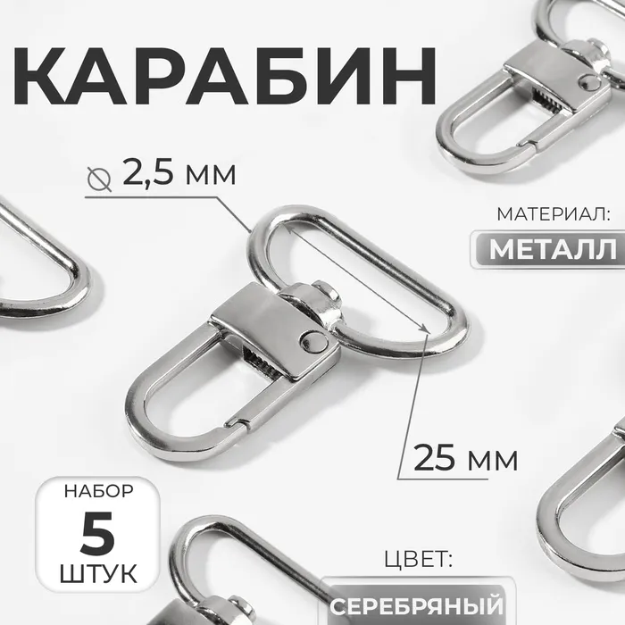 Карабин металлический, 42×30 мм / 25×2.5 мм, 5 шт., цвет серебряный — Характеристики