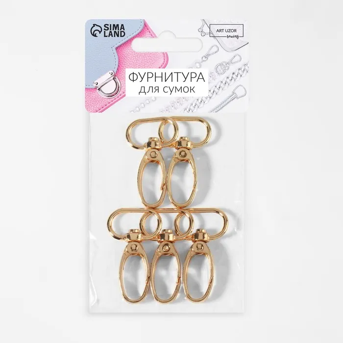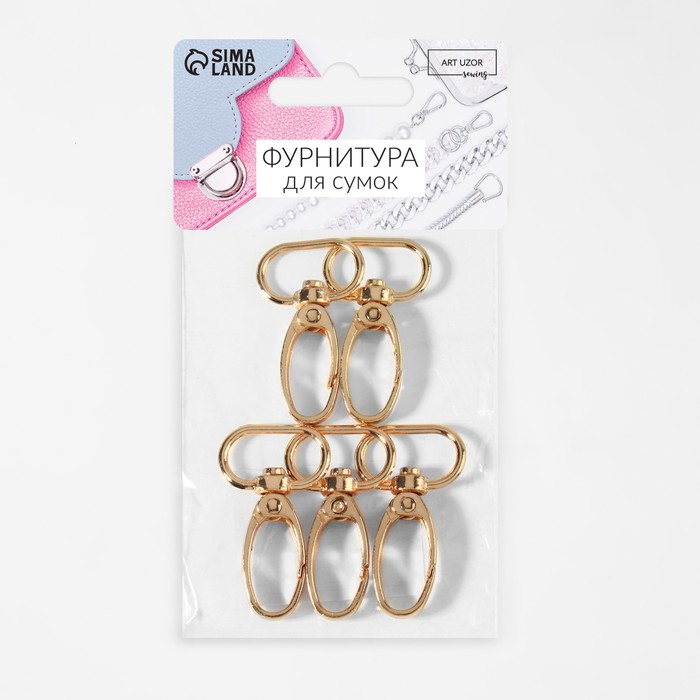 Карабин металлический, 43×25 мм / 20×2.2 мм, 5 шт., цвет золотой — Характеристики