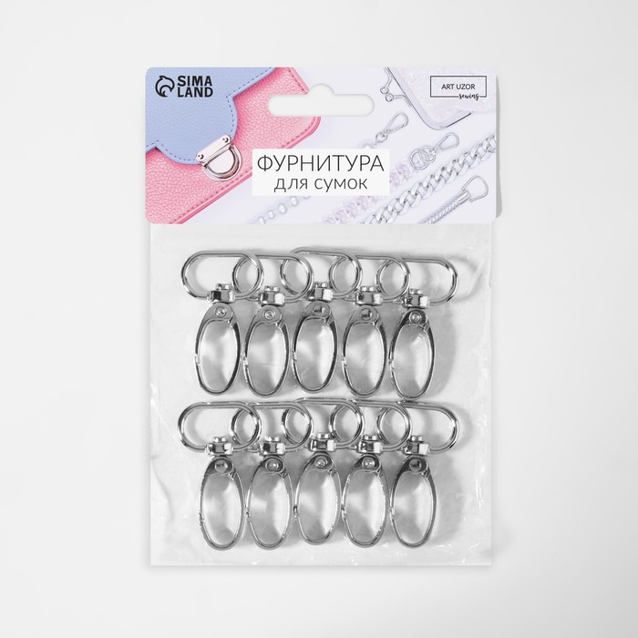 Карабин металлический, 44×25 мм / 20×2.2 мм, 10 шт., цвет серебряный — Характеристики