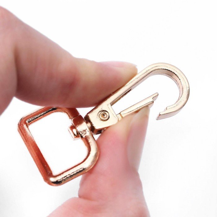 Металлический карабин предназначен для крепления ремней, ручек или декоративных элементов к сумке. Изготовлен из прочного металла, имеет гладкую поверхность и элегантный вид, что делает его не только функциональным, но и стильным элементом фурнитуры. Карабин оснащён пружинным механизмом, который позволяет легко открывать и закрывать его одной рукой, обеспечивая надёжное крепление.