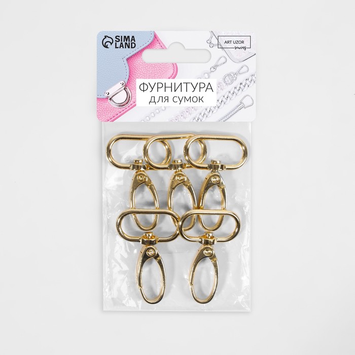Карабин металлический, 45×31 мм / 25×2.2 мм, 5 шт., цвет золотой — Характеристики